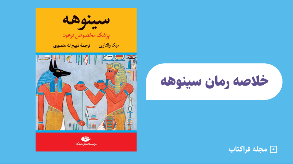 خلاصه کتاب سینوهه نام پزشک مخصوص فرعون است که در کودکی توسط خانوادهاش به رود نیل سپرده شده و یک زوج فقیر او را از آب گرفته و به جای فرزند خود بزرگ میکنند.